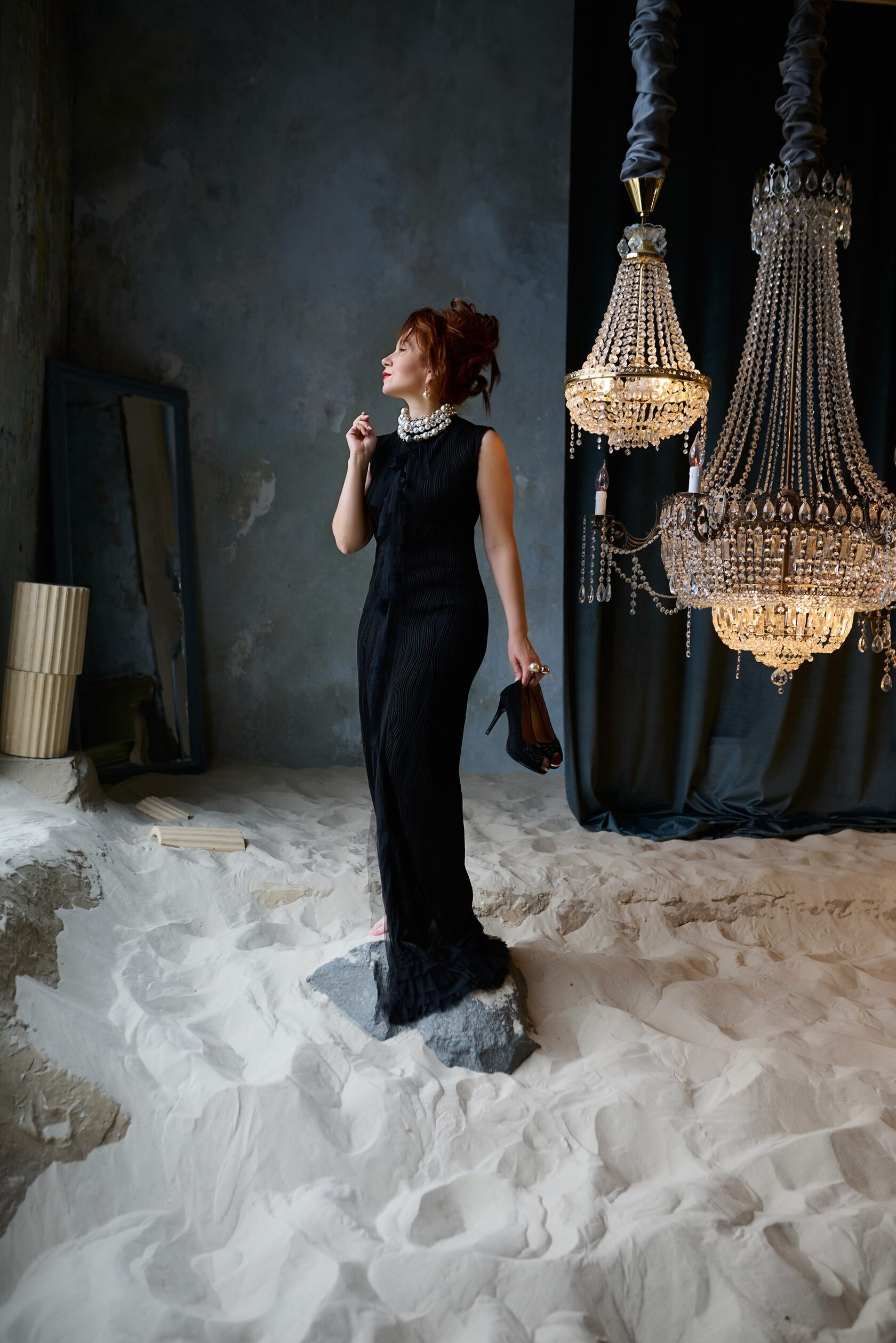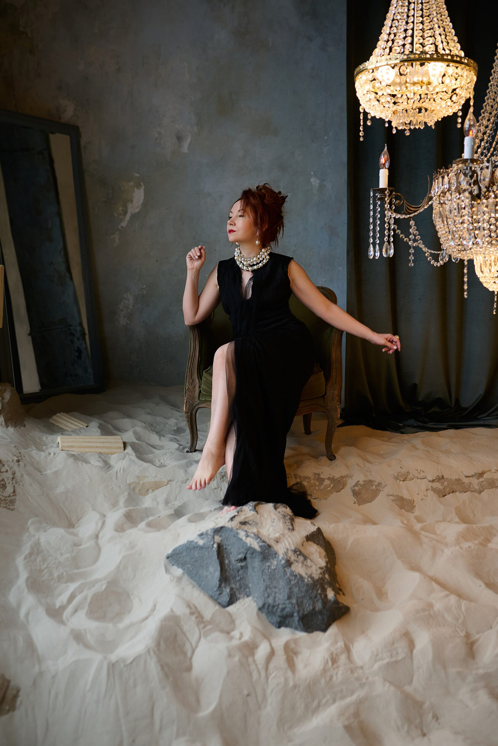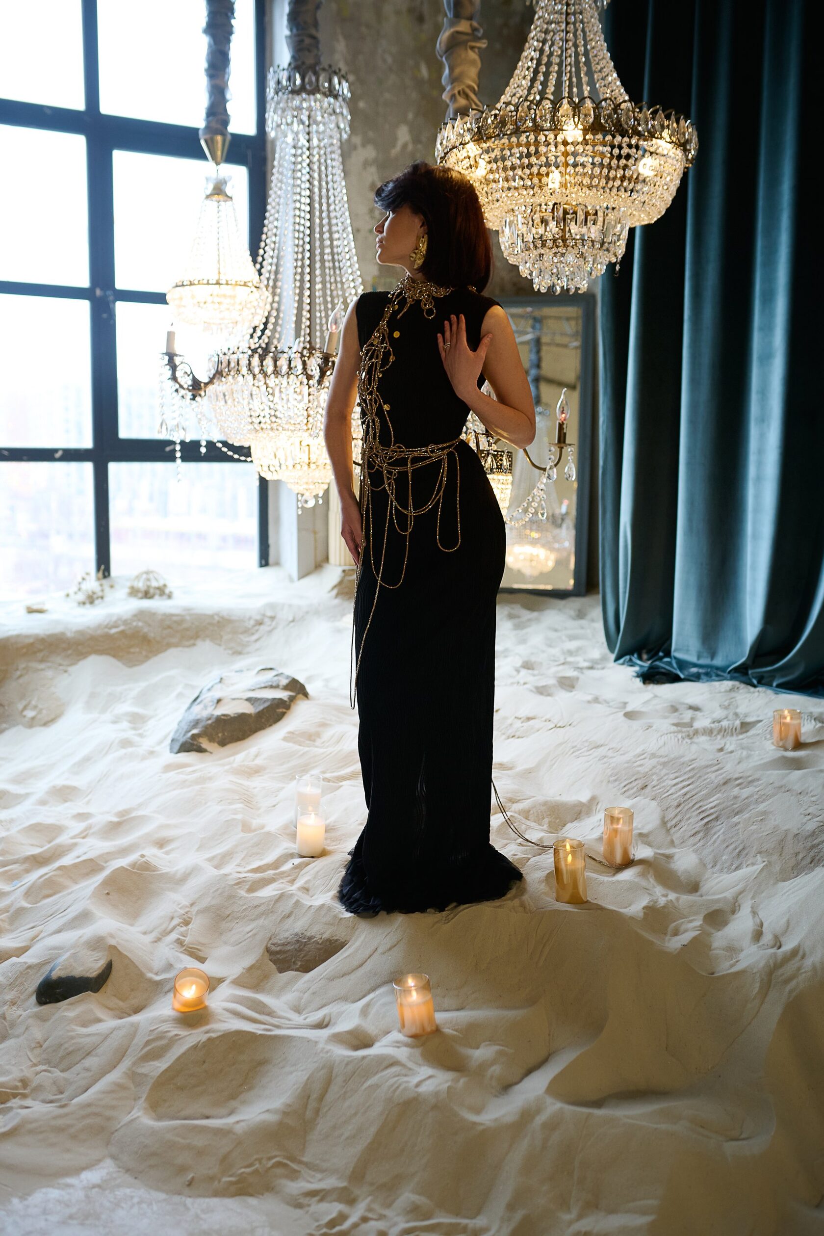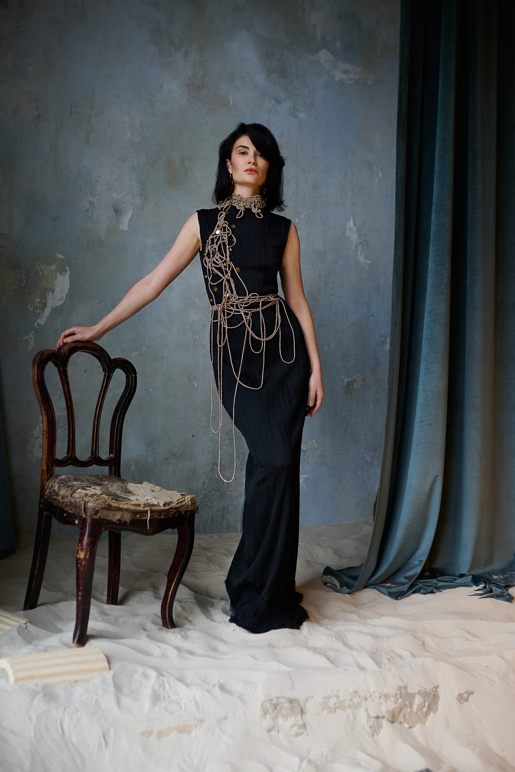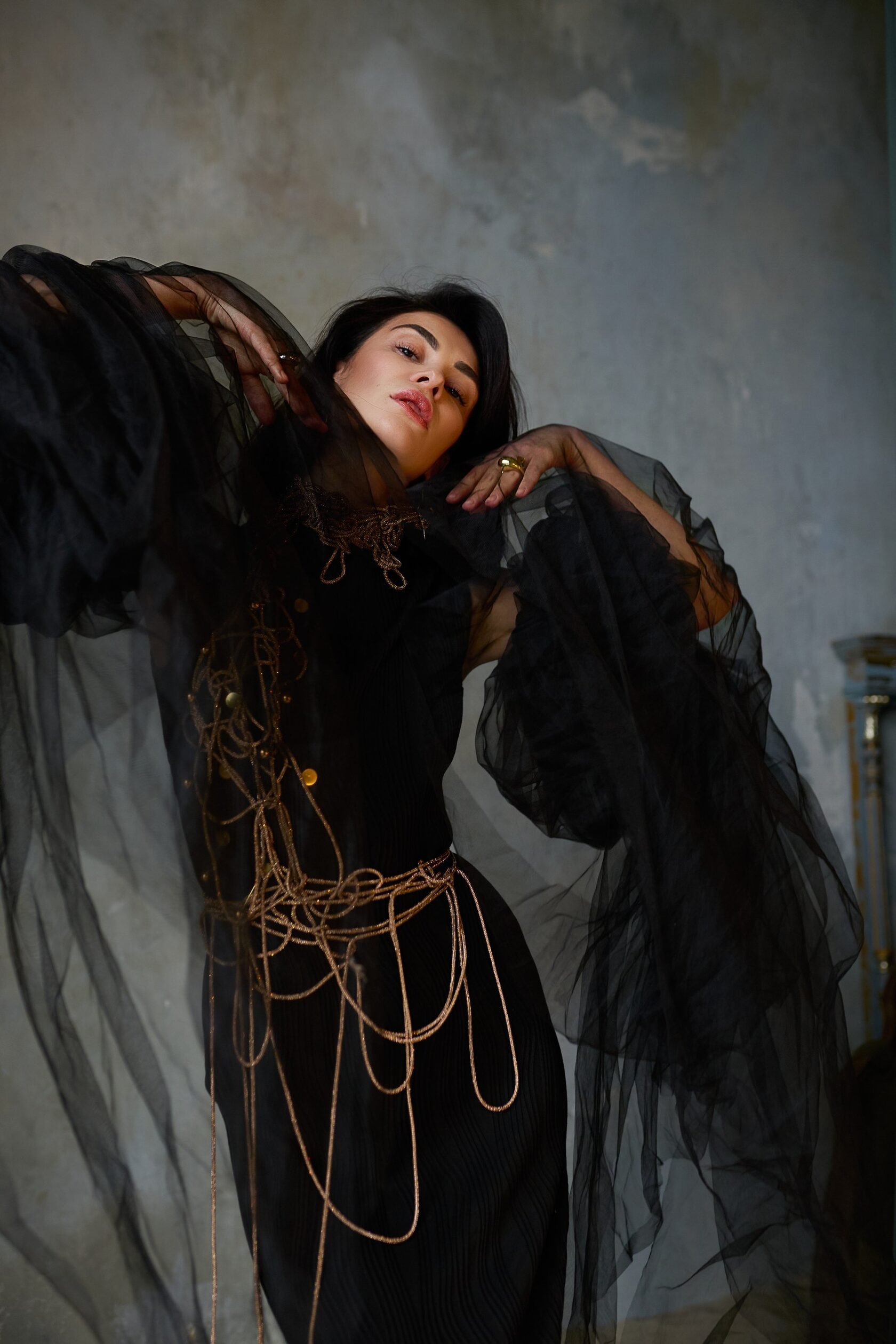 Богический и богемный... Образ SOFI LOREN!!! Просто создан для сцены покорять зрителя! Уместен на красивом мероприятии, красной дорожке, съёмках, кино. Абсолютно продуман и комфортен. Черное платье по фигуре. Посадка изумительна в любом размере. Основное платье из трикотажа, декор разреза - фатин. Размер 42-48 Съёмные рукава ЧЁРНЫЕ МЕДУЗЫ Украшение - это отдельный восторг! Аналогов нет) Возможно потребуется помощь ассистента/стилиста для закрепления украшения на платье. Бижутерия входит в аренду. Можно выбрать. Есть варианты.