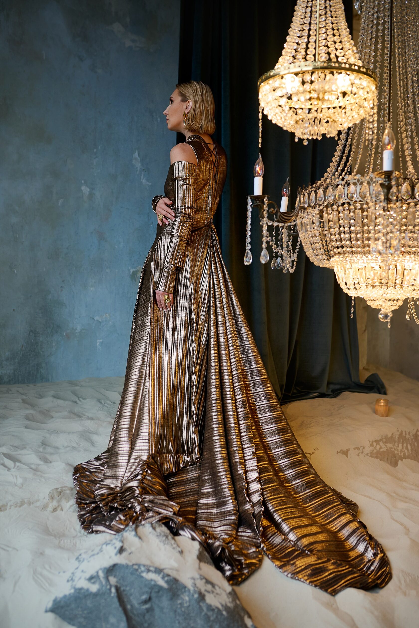 Платье - как золотая статуэтка! Конечно, ОСКАР!!! Конечно, шикарное! Конечно, достойное! Исполнено в лучших традициях кутюрных ателье) Повторить невозможно) Оно единственное! Прекрасный выбор для красной дорожки и выступления на сцене! И конечно съёмки) Платье ОСКАР - это платье-конструктор. Рукава съёмные. Есть специальная деталь, чтобы сделать воротник-стойку и полностью закрыть вырез на спине. Есть деталь-украшение тоже съёмная. Платье с невероятным дизайнерским шлейфом. Очень эффектным! Украшения входят в аренду. Можно выбрать. Размер 42-44