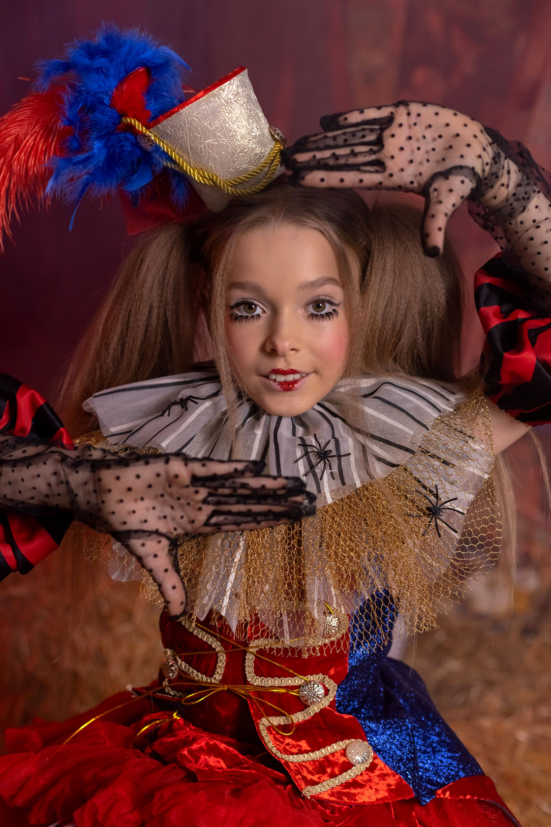 Образ в стиле ВИНТАЖНЫЙ ТЕАТР или ВИНТАЖНЫЙ ЦИРК Это восторг! Потрясающая и ошеломительная ДРЕСИРОВЩИЦА! Яркие красочные детали! Винтажные расцветки! Костюм-конструктор Паучки съёмные, можно и без них.